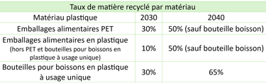 Réduction des emballages : 5% d’ici 2030, 10% pour 2035 et 15% en 2040.